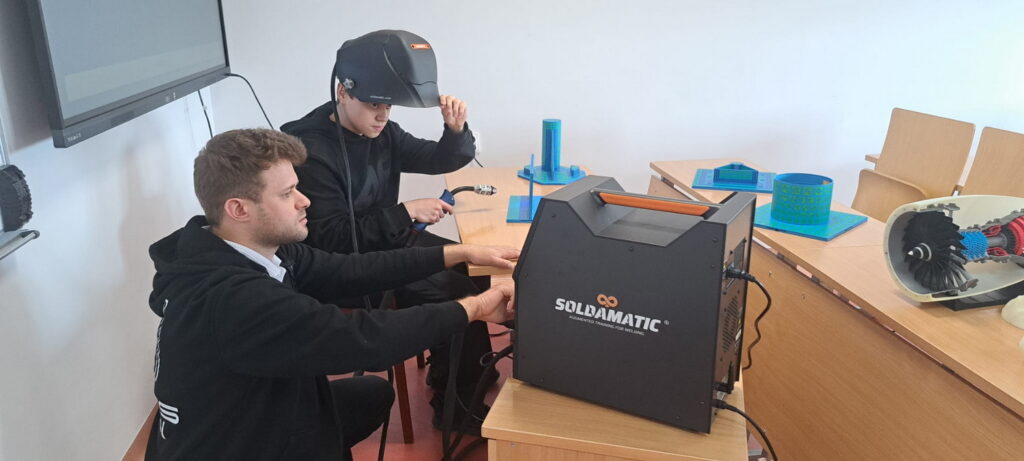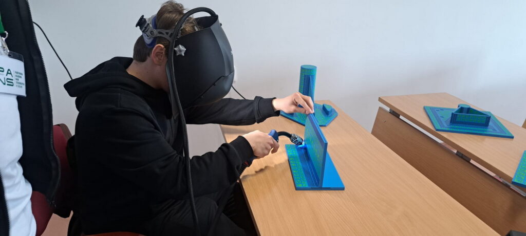 Ogromnym zainteresowaniem cieszyły się również stanowiska spawalnicze, gdzie chętni mogli sprawdzić swoje umiejętności podczas pracy na symulatorze spawania. Jak się szybko okazało – precyzyjne wykonanie spawu wcale nie jest takie łatwe, a doświadczenie to pozwoliło uczniom jeszcze bardziej docenić wymagania stawiane specjalistom w zawodach technicznych.